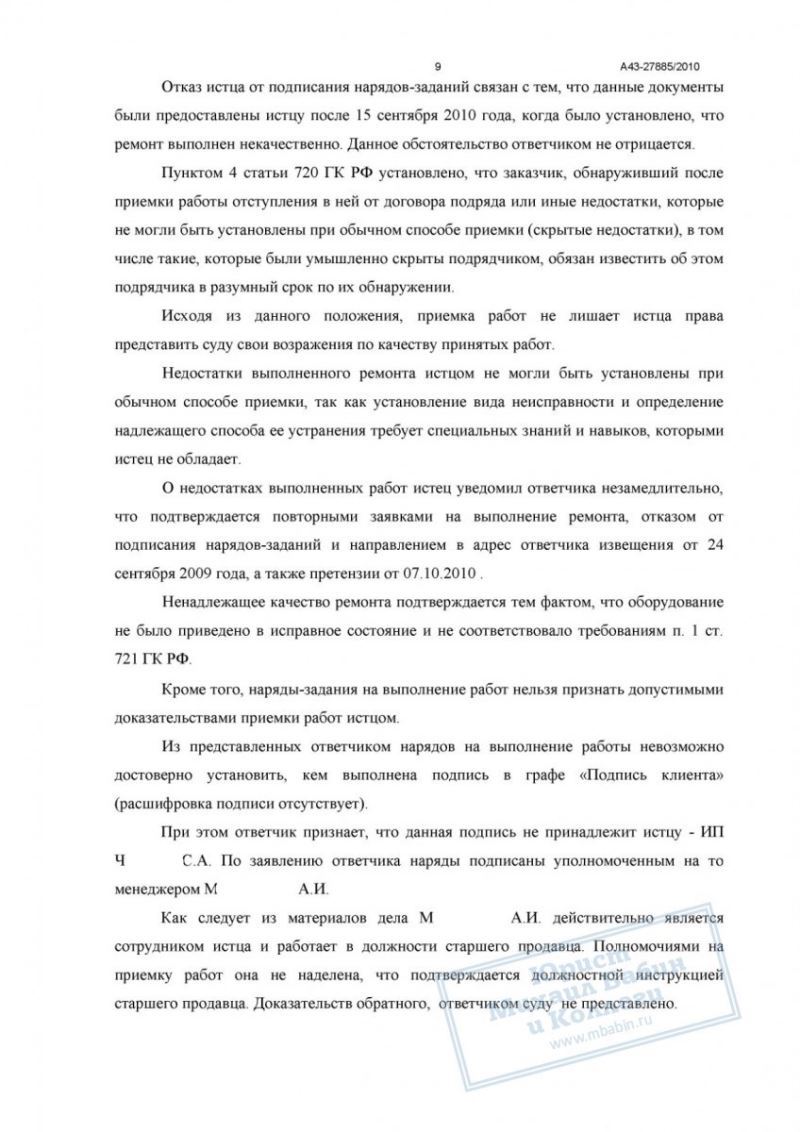 - факт заключения договора на ремонт оборудования и его неоднократное некорректное выполнение подтверждены актами приёмки-передачи, заявками на ремонт и перепиской сторон;